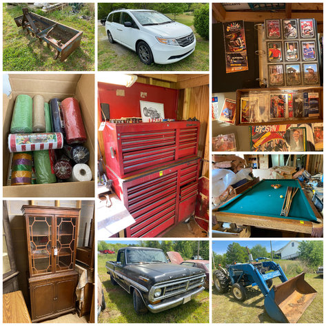 Find tools, furniture, appliances, collectibles, and more in this online estate auction, featuring a Craftsman riding mower, Sears Super 12 tractor, and a variety of household and collectible items.